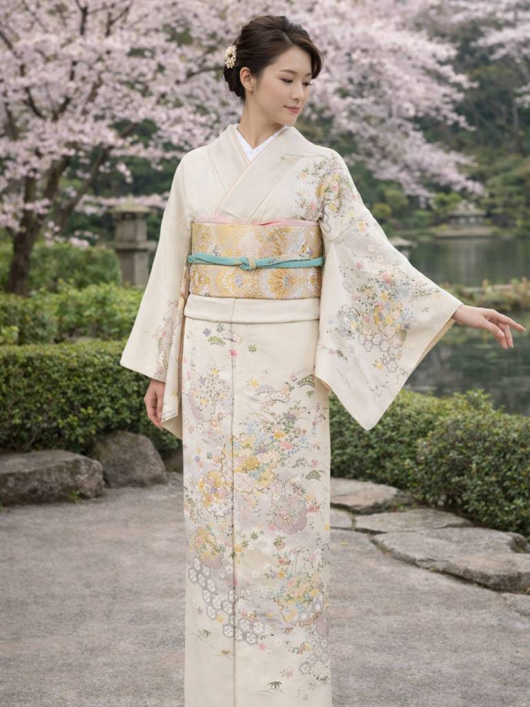 A. 真っ白ではないアイボリークリーム色で、お柄も華やかなので婚礼参列にもおすすめいたします