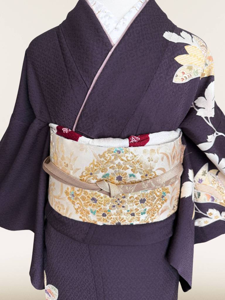 袋帯は着物の格に合った物のお任せですが有料で事前指定も承れます→袋帯ラインナップを見る