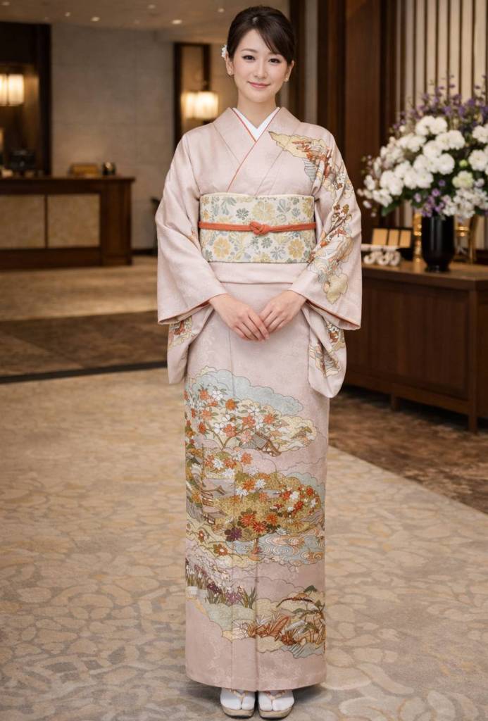 全体は落ち着きと柔らかみのある灰桜色で、品格の中にも女性らしい愛らしさが感じられます。