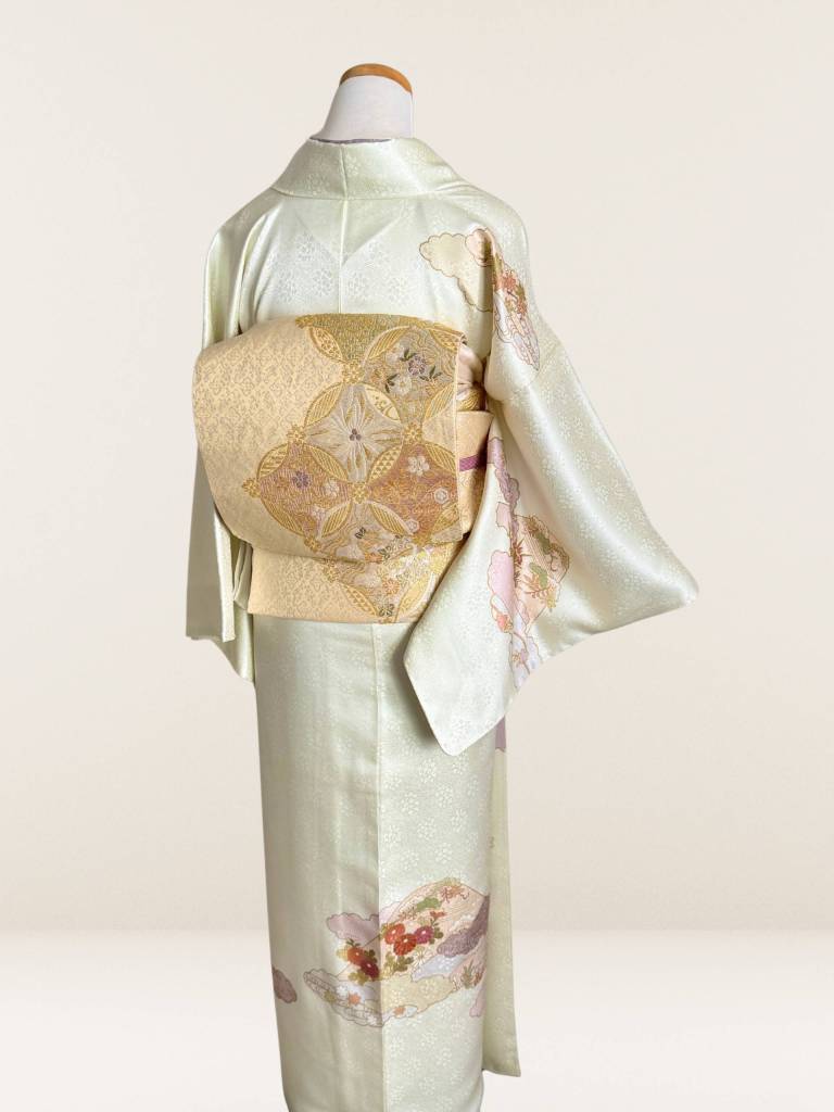 袋帯は着物の格に合った物のお任せですが有料で事前指定も承れます→袋帯ラインナップを見る