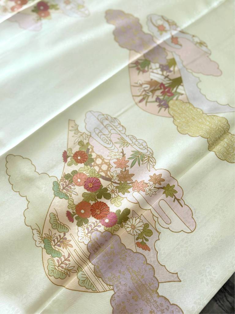 香り立つ様な光沢感。花びらの地紋があしらわれた紋意匠の最高級丹後ちりめん生地。