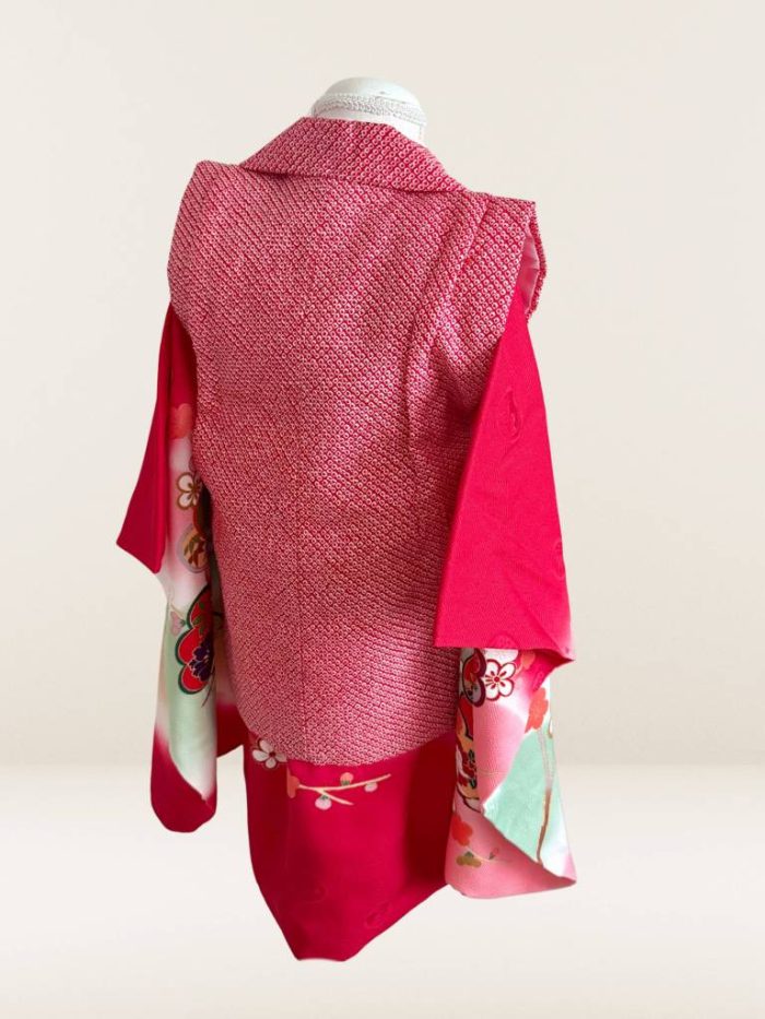 お着物は地色が赤色の正絹着物です