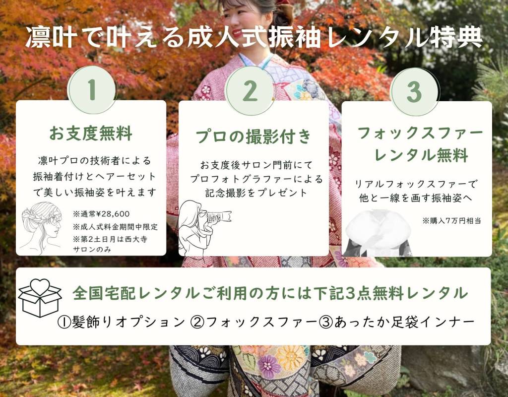 成人の日(月曜)、前日(日曜)、前々日(土曜)共に奈良西大寺サロンでお支度を承ります